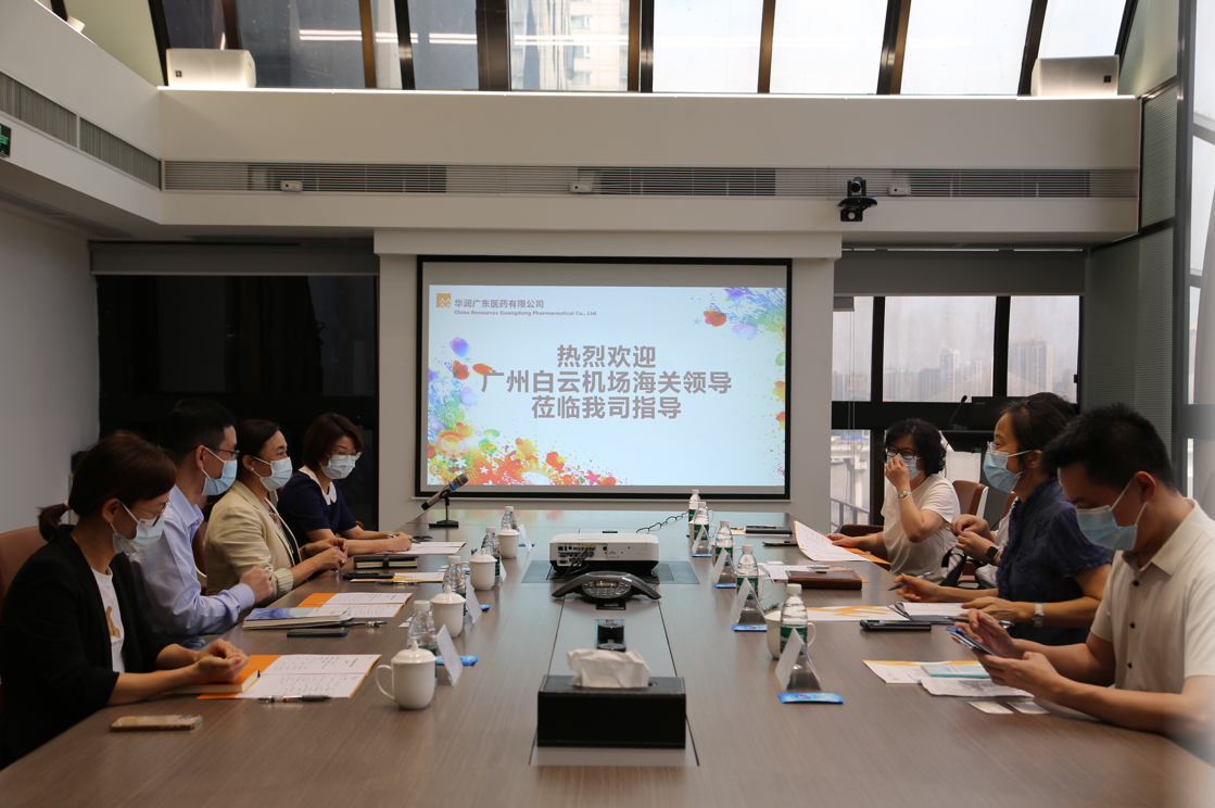 2022年6月10日,廣州白云機場海關(guān)一行領(lǐng)導(dǎo)來到華潤廣東醫(yī)藥有限公司(以下簡稱:“華潤廣東醫(yī)藥”)開展調(diào)研交流會。廣州白云機場海關(guān)關(guān)長顧炯、副關(guān)長鄭曼瑩、審核業(yè)務(wù)處處長黃怡、駐跨境電商監(jiān)管中心辦事處副主任張韜、審核業(yè)務(wù)處業(yè)務(wù)三科副科長祝佳楠,華潤醫(yī)藥商業(yè)華南區(qū)域、華潤廣東醫(yī)藥總經(jīng)理霍佩瓊及管理團隊、國際業(yè)務(wù)相關(guān)負責(zé)人共同參與。