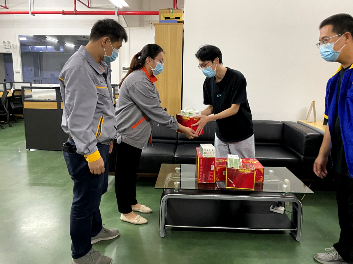 8月5日,由華潤(rùn)佛山醫(yī)藥物流部總監(jiān)和工會(huì)主席帶隊(duì),黨支部及工會(huì)委員隨行來(lái)到公司倉(cāng)庫(kù),為一線(xiàn)配送員、運(yùn)輸員送上清涼飲料和藿香正氣口服液等防暑用品。還現(xiàn)場(chǎng)開(kāi)展了安全生產(chǎn)、防暑降溫和中暑應(yīng)急知識(shí)宣傳教育,并叮囑他們要做好防暑降溫工作,確保身體健康和安全生產(chǎn)。”