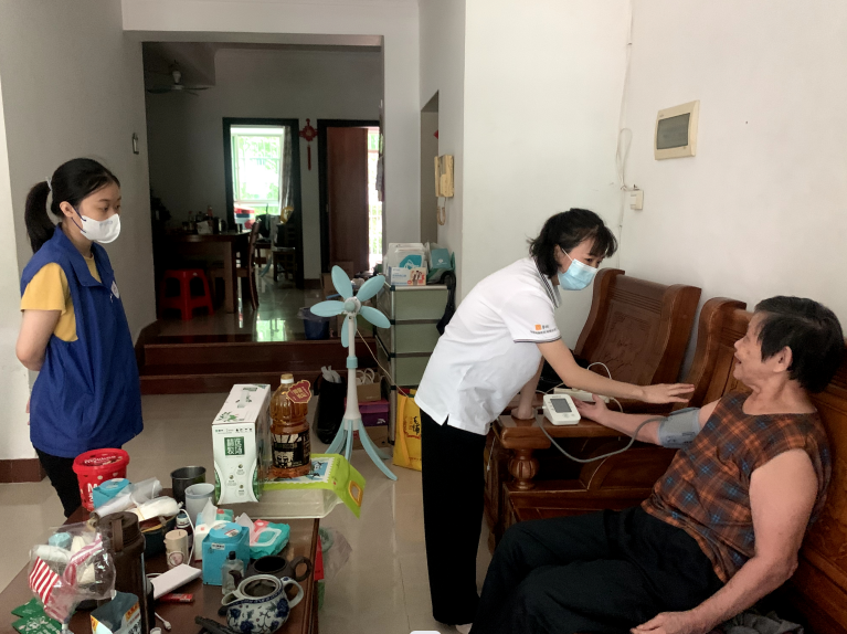 在活動(dòng)過(guò)程中,志愿者對(duì)受訪(fǎng)者噓寒問(wèn)暖,耐心聆聽(tīng)受訪(fǎng)者的傾訴,引導(dǎo)其以樂(lè)觀(guān)的心態(tài)面對(duì)生活,鼓勵(lì)他們積極做康復(fù),并為他們測(cè)量血壓,根據(jù)檢測(cè)結(jié)果結(jié)合所了解到的情況,向受訪(fǎng)人及其家人指導(dǎo)日常生活、飲食等注意事項(xiàng)及常備用藥,并為他們送上職工捐款購(gòu)買(mǎi)的大米、食用油和牛奶等慰問(wèn)品,受訪(fǎng)者及其家人紛紛表示感謝。