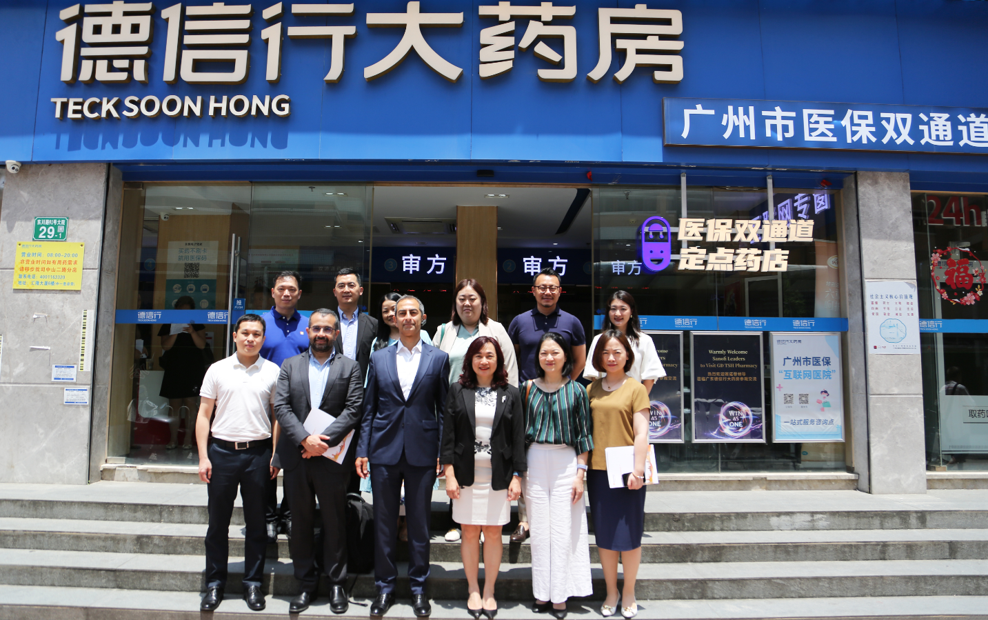 在廣東德信行大藥房旗艦店及新特藥店,賽諾菲全球管理團隊一行先后了解了專業(yè)藥店優(yōu)越的地址位置與周邊醫(yī)療資源,參觀了藥店內(nèi)部根據(jù)不同患者需求設(shè)置的專業(yè)化功能分區(qū),并對“港澳藥械通”項目進展進行深入討論。