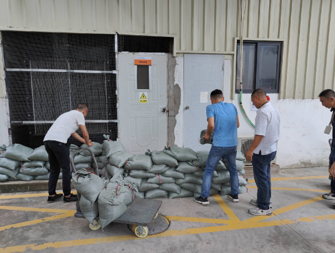 在公司領(lǐng)導(dǎo)班子的統(tǒng)一領(lǐng)導(dǎo)下,華潤汕頭康威醫(yī)藥留守抗臺同事全體動員、通宵備戰(zhàn),嚴(yán)格落實(shí)各項(xiàng)防御措施。臨時加裝沙包兩百余袋,并分別堆放于廣東德信行大藥房連鎖有限公司汕頭各門店及公司發(fā)電機(jī)房、配電房等重要功能房門口;落實(shí)雨衣、抽水泵等防臺防汛應(yīng)急物資及員工飲食等生活物資儲備到位;確保備用發(fā)電機(jī)有效運(yùn)行。與此同時,質(zhì)量部持續(xù)加強(qiáng)園區(qū)及庫內(nèi)防臺防汛專項(xiàng)隱患排查,及時消除隱患。