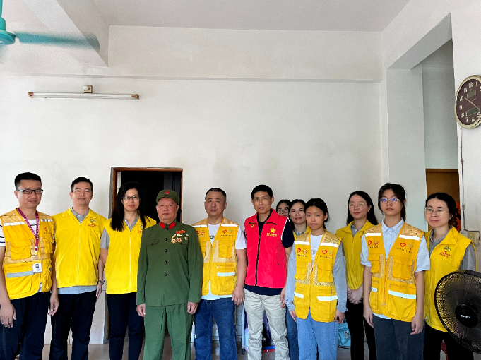 當(dāng)天上午,大家分成兩隊,帶上慰問品前往老兵住處,與老兵們親切交談,了解他們的生活和健康狀況,傾聽他們在炮火硝煙中的戰(zhàn)斗故事,追憶軍旅生涯,感悟紅色精神。走訪過程中,一名身穿綠軍裝的老兵,激動講述當(dāng)年對越自衛(wèi)反擊戰(zhàn)的經(jīng)歷,雖一次次與死神擦肩而過,但終因手榴彈襲擊,導(dǎo)致耳朵永久失聰??粗媳鴪远ǖ难凵窈驼洳氐臉s譽勛章,時至今日,我們依然能震撼地感受到其保家衛(wèi)國的熱血情懷和不畏勁敵的英勇精神。最后,老兵們對大家的來訪深表感動,并希望自己能繼續(xù)發(fā)揮余熱,為國家和政府事業(yè)貢獻(xiàn)力量。