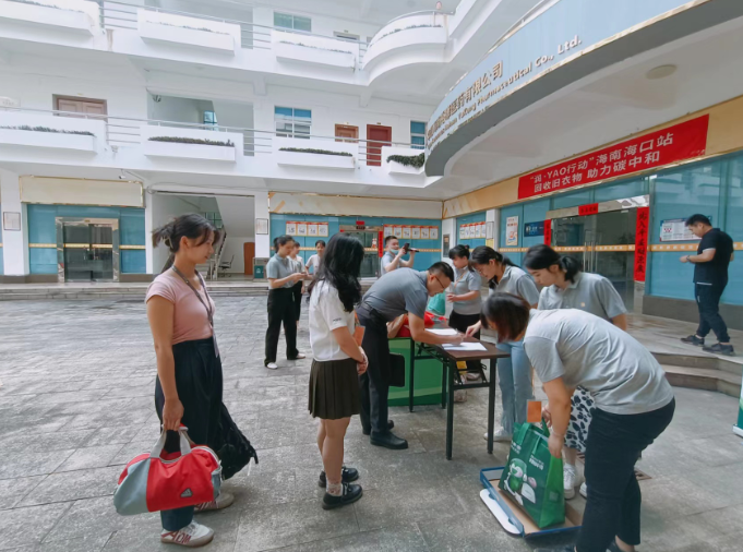 活動前,華潤海南裕康醫(yī)藥行政部、黨支部聯(lián)動,對外到同棟各家企業(yè)進行活動宣傳,對內(nèi)協(xié)同EHS專員開展環(huán)保宣講,通過對垃圾分類、服裝全生命周期循環(huán)再利用閉環(huán)體系的講解,讓職工群眾對合理利用廢舊紡織物帶來的環(huán)保效益以及開展舊衣回收活動的意義有了進一步的認識,提高活動參與度。