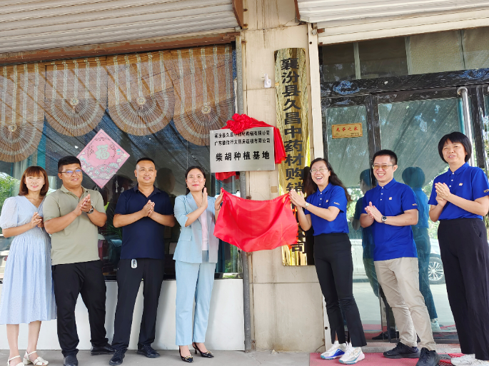 近日,華潤(rùn)醫(yī)藥商業(yè)華南區(qū)域廣東德信行大藥房與襄汾縣久昌中藥材購(gòu)銷有限公司聯(lián)合建設(shè)柴胡種植基地在山西省臨汾市襄汾縣荀董村舉行掛牌儀式。廣東德信行中藥保健品部和襄汾縣久昌中藥材購(gòu)銷有限公司負(fù)責(zé)人出席掛牌儀式。