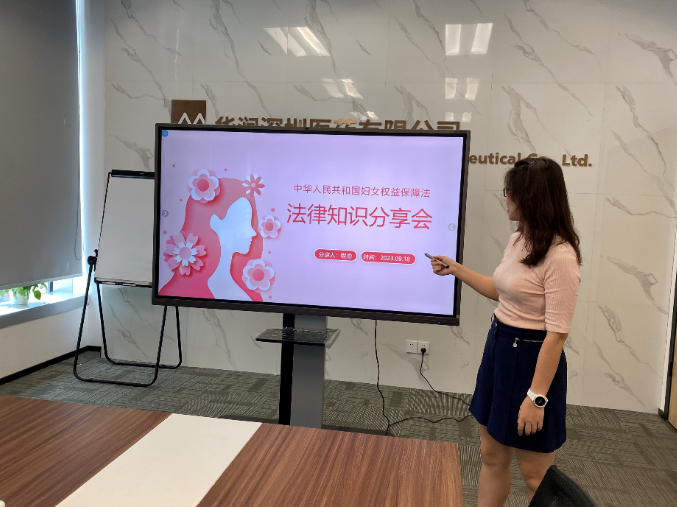為宣傳貫徹法治思想,增強(qiáng)職工法治觀念,2023年9月18日華潤(rùn)深圳醫(yī)藥有限公司工會(huì)開展《中華人民共和國(guó)婦女權(quán)益保護(hù)法》(以下簡(jiǎn)稱《婦女權(quán)益保護(hù)法》)普法宣傳活動(dòng),向廣大女職工宣講《婦女權(quán)益保護(hù)法》,講解相關(guān)法律知識(shí),增強(qiáng)婦女維權(quán)意識(shí),在全公司營(yíng)造尊重和保障婦女權(quán)益的法治氛圍。