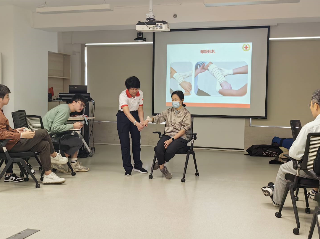 本次培訓(xùn)邀請了廣州市越秀區(qū)紅十字會專業(yè)講師為員工授課,課程以中國紅十字會初級救護(hù)員知識為基礎(chǔ),理論與實踐相結(jié)合。包括:急救概論、應(yīng)急救護(hù)目的、急救原則和程序知識講解,并重點教授心肺復(fù)蘇術(shù)、體外除顫器AED使用、創(chuàng)傷急救基本等技能。