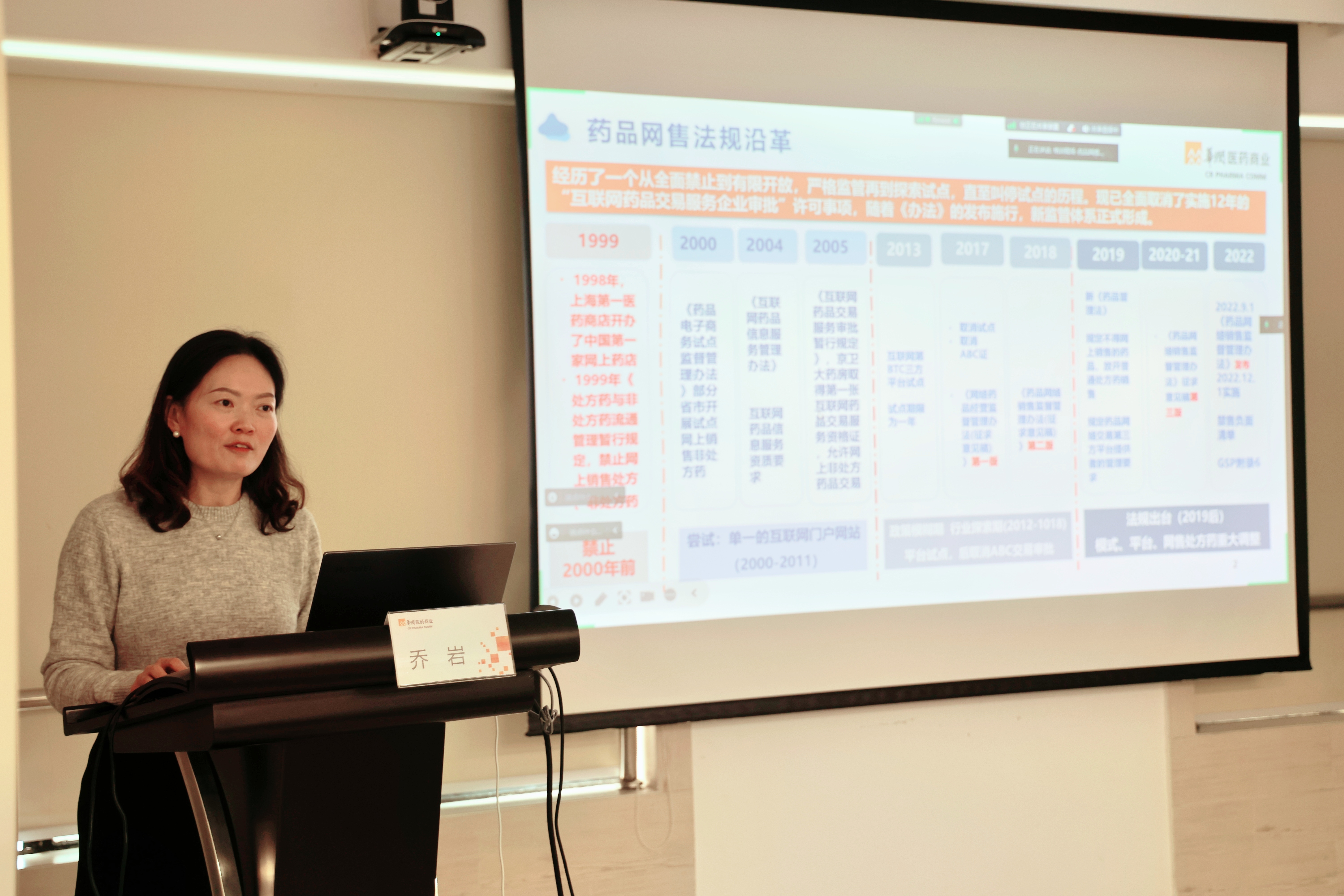 喬巖從藥品網(wǎng)絡(luò)銷售的歷史沿革到發(fā)展趨勢、銷售模式與方式,詳細講述了藥品網(wǎng)絡(luò)銷售從全面禁止到有限開放、嚴格監(jiān)管再到探索試點、從單一的互聯(lián)網(wǎng)門戶網(wǎng)站再到如今多樣化的網(wǎng)絡(luò)銷售業(yè)態(tài),并對入駐平臺監(jiān)管、網(wǎng)售資質(zhì)的展示、藥品信息展示、上下游客戶管理、網(wǎng)售藥品配送、零售買贈、零售處方管理等風(fēng)險管控要點進行了重點講解。喬巖指出,面對如今嚴格的監(jiān)管及多樣化的網(wǎng)絡(luò)銷售模式,藥品網(wǎng)絡(luò)銷售的風(fēng)險點隨之而來,也是企業(yè)需要重點關(guān)注的內(nèi)容。