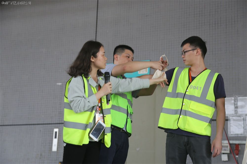 公司安排了近期參加廣州市紅十字會現(xiàn)場應(yīng)急培訓(xùn)班的同事為大家一邊演示,一邊講解了現(xiàn)場急救護(hù)自我保護(hù)原則、程序;外傷急救基本技術(shù)(傷員搬運、外傷止血、傷口包扎、骨折固定)等知識。