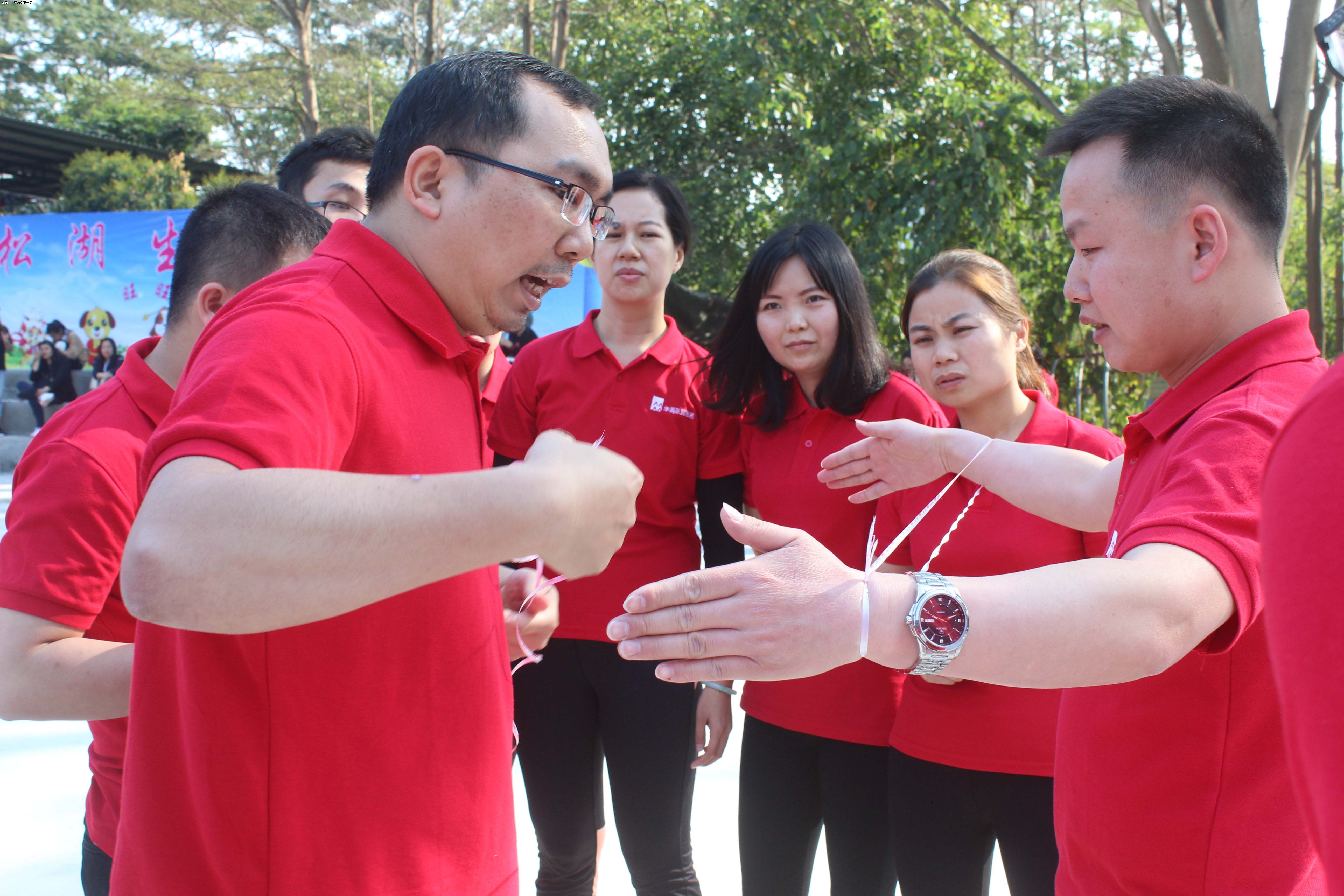 隨后的一個熱身舞蹈讓現(xiàn)場氣氛被徹底調(diào)動起來,隊員們熱情高漲,團(tuán)建活動進(jìn)入第二個環(huán)節(jié):挑戰(zhàn)160。在160秒內(nèi)一次性完成“解手繩”、“解手環(huán)”、“傳瓶子”、“拍掌喊號”四個項目,這既考驗個人智力也挑戰(zhàn)團(tuán)隊合作能力。面對這幾個難題,現(xiàn)場展開了熱烈的討論,隊員們集思廣益,各抒己見,嘗試各種不同的方法,也積極學(xué)習(xí)和借鑒其他團(tuán)隊的做法。經(jīng)過充分的實踐,各個小組克服困難,總結(jié)出最優(yōu)的方案,先后完成160挑戰(zhàn),其中“中國紅”隊以84秒的好成績勝出。