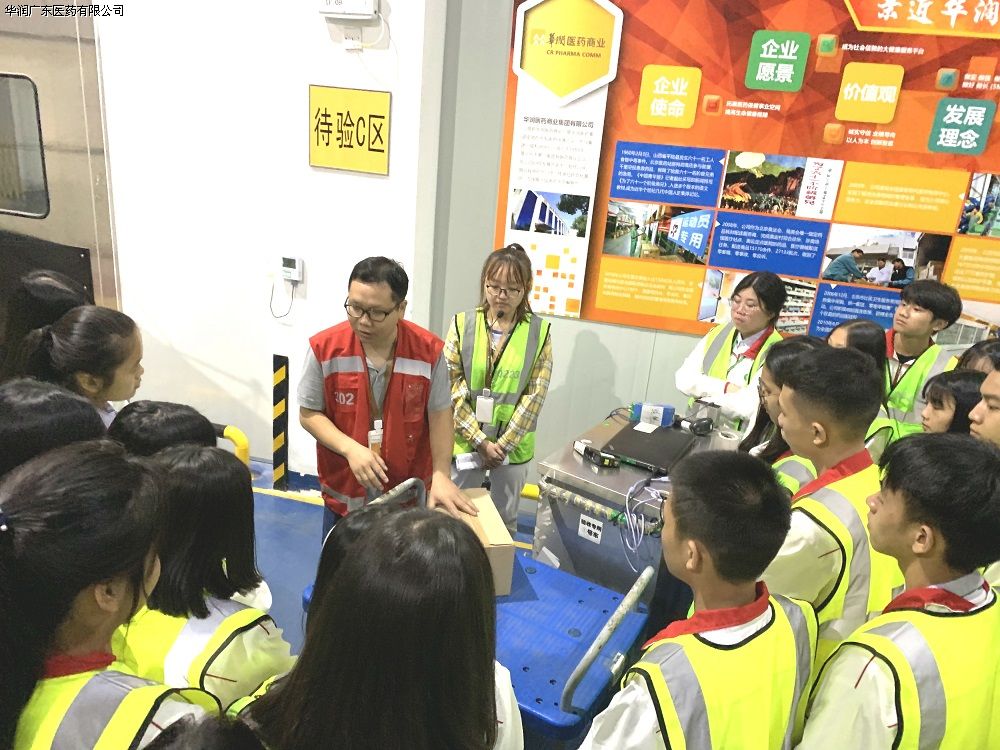 歡迎儀式上,5分鐘的《守護藥品質量安全的衛(wèi)士》小短片,以華潤醫(yī)藥卡通形象代言人“潤小藥”的視角,為同學們生動地介紹了華潤集團的發(fā)展歷程以及積極履行社會責任的故事。隨后開放日工作人員為參觀師生介紹了廣州物流中心的基本情況及參觀安全須知后,“參觀之旅”正式開啟!