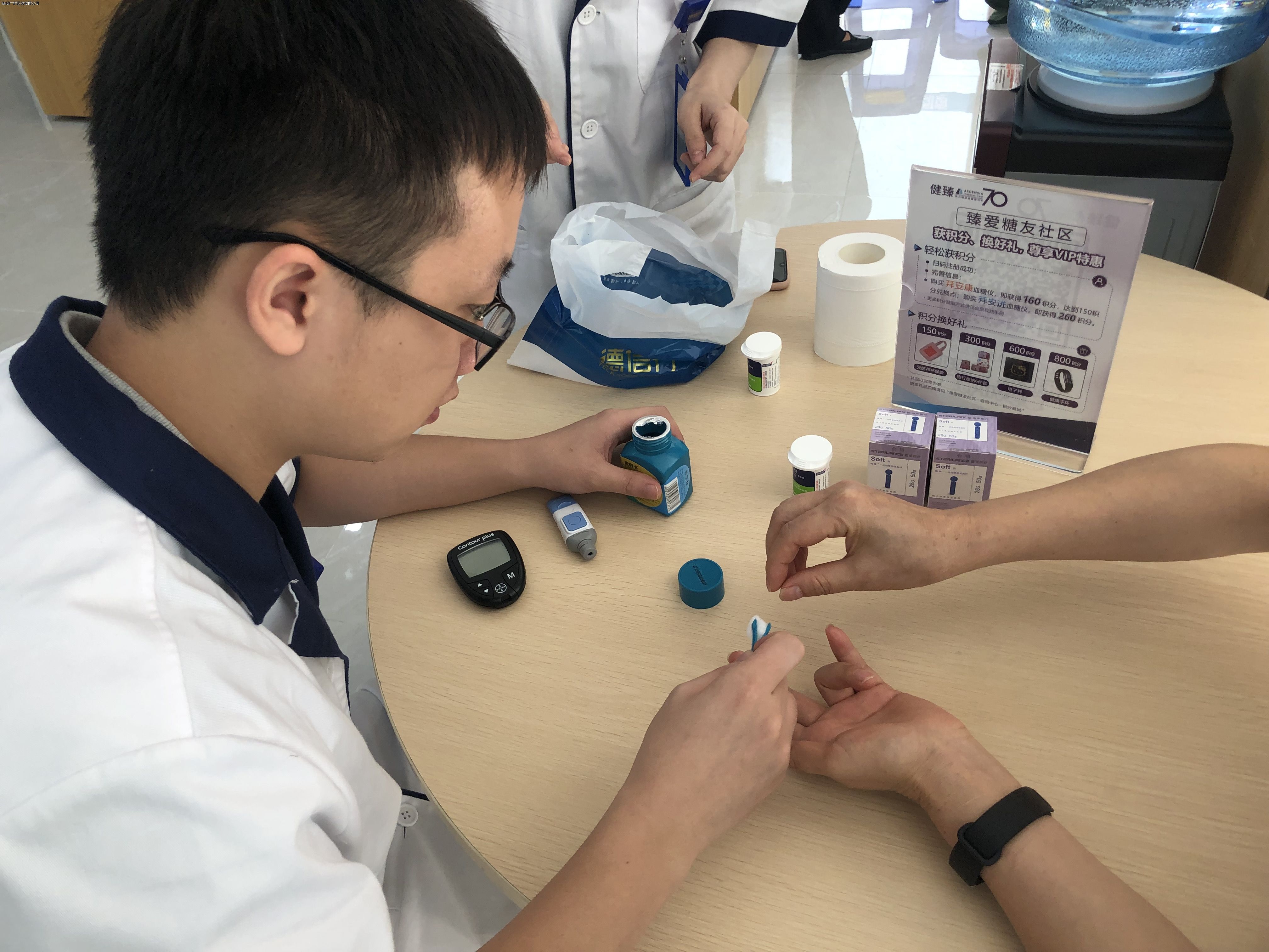 活動(dòng)當(dāng)日,藥店內(nèi)設(shè)置了潤(rùn)•YAO行動(dòng)-愛心服務(wù)站”,分為免費(fèi)測(cè)血糖及免費(fèi)艾灸理療兩個(gè)區(qū)域,店內(nèi)執(zhí)業(yè)藥師利用血糖儀為客人測(cè)量血糖,并根據(jù)檢測(cè)結(jié)果給予專業(yè)藥學(xué)建議。理療師則負(fù)責(zé)肩頸腰腿不適的客人針對(duì)其患處進(jìn)行艾灸理療。此次活動(dòng)獲得了周邊街坊廣泛好評(píng),到店客人可根據(jù)自身需要選擇相應(yīng)服務(wù)
