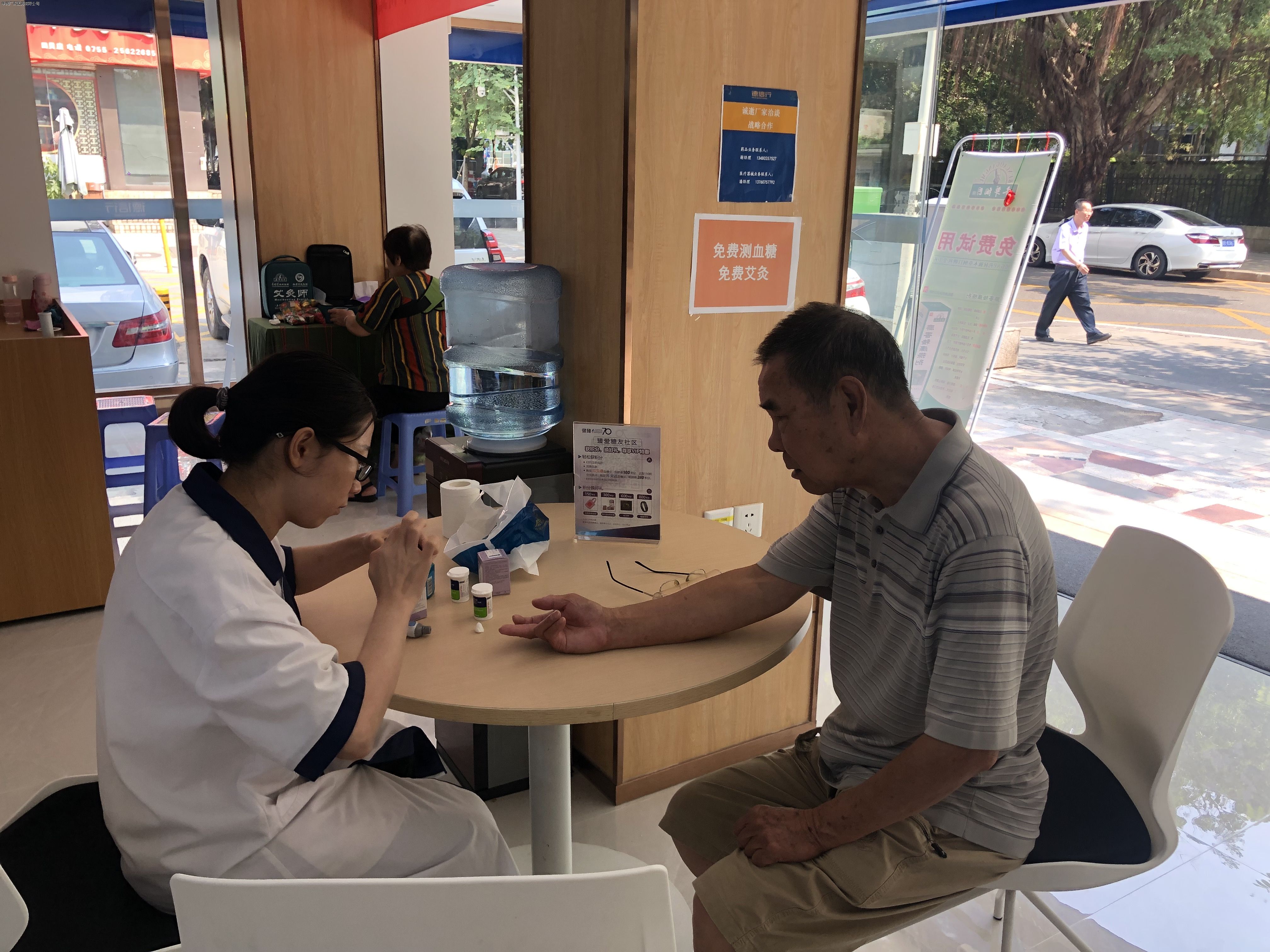 9月27日,華潤(rùn)深圳醫(yī)藥有限公司聯(lián)合李時(shí)珍醫(yī)藥集團(tuán)有限公司,在廣東德信行大藥房深圳翠竹分店開展為期一天的“潤(rùn)•YAO行動(dòng)-愛心服務(wù)站”公益活動(dòng),為藥店周邊社區(qū)群眾提供免費(fèi)艾灸及免費(fèi)測(cè)血糖服務(wù) 。