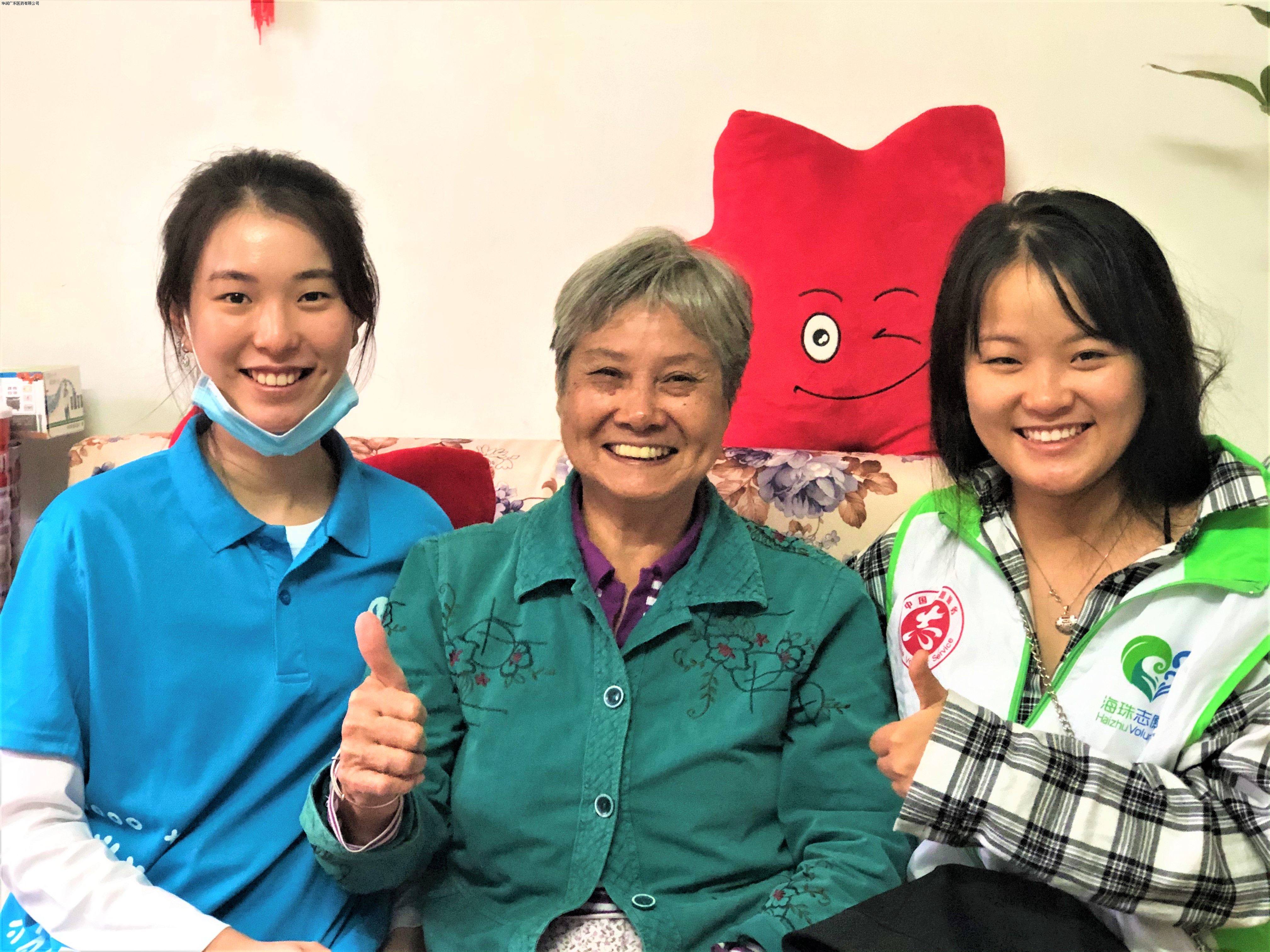 “葉婆婆,這個藥膏您平時關(guān)節(jié)酸痛可以用來貼的,這個分藥器您平時備好一周的用量,下次就不會忘記啦”。志愿者依次介紹愛心禮包內(nèi)的物品,一遍遍叮囑長者要保重身體。“姑娘仔,我囡平時工作忙,少來探我,看到你令我想起我既囡呀”,志愿者離開時,陳婆婆拉著志愿者的手依依不舍得告別。臨走前,長者們大多主動提出合影留念,還叮囑志愿者們記得常來看看。此次活動前,志愿者們還親手寫下對長者們的祝福,并送上了愛心明信片,不少人表示有機會下次一定還要參與其中。