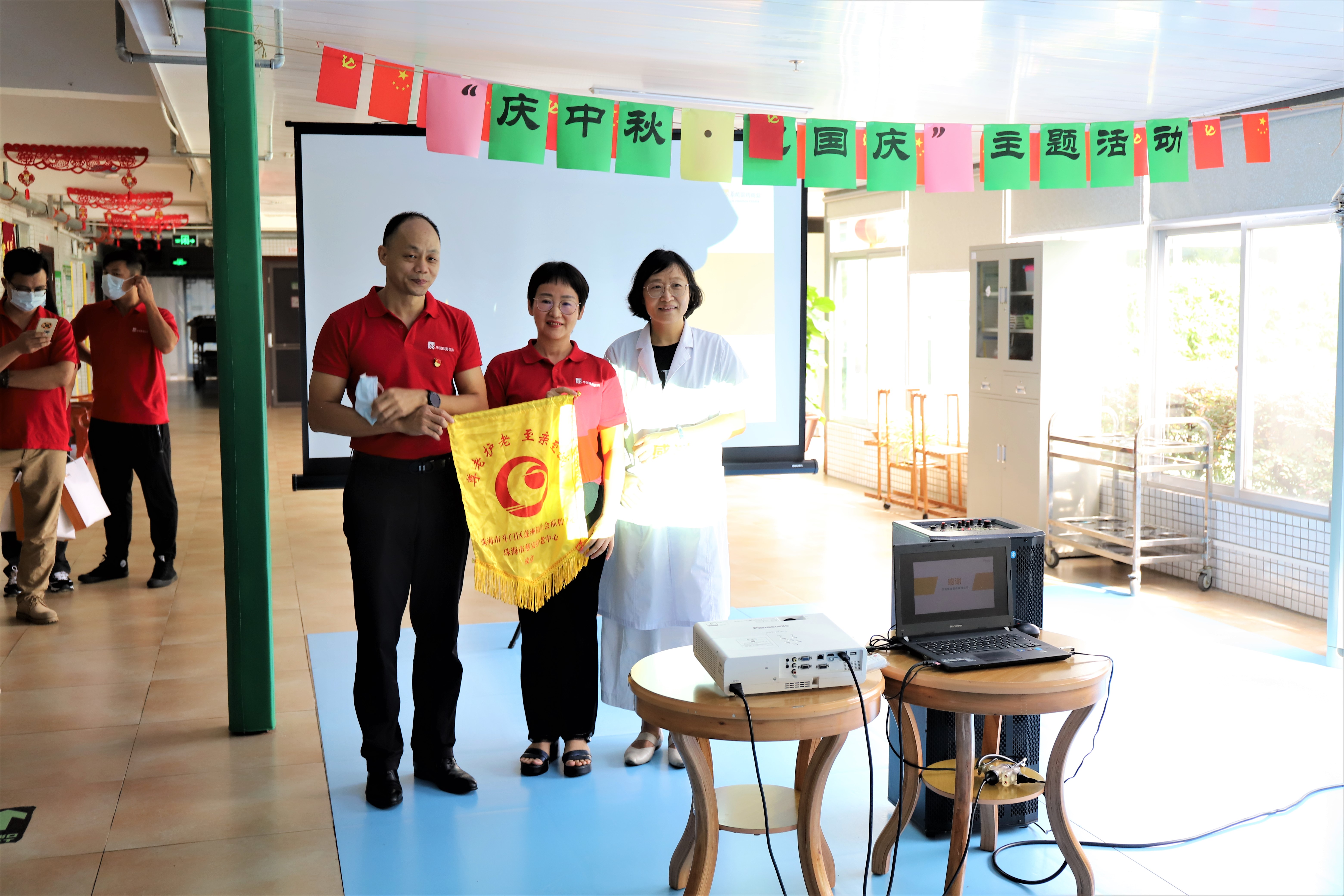 歷經(jīng)50分鐘的車程,我們到達預(yù)定的活動第二目的地——珠海市容永道養(yǎng)老院。活動開始時,公司工會委員會葉主席帶來華潤集團的發(fā)展歷程及華潤珠海醫(yī)藥有限公司的介紹,講述紅色文化基因下,華潤珠海醫(yī)藥踐行社會責任的使命與擔當?,F(xiàn)場容永道養(yǎng)老院梁院長為本次愛老、敬老、助老活動贈旗致意,對本次活動表示肯定和支持。
