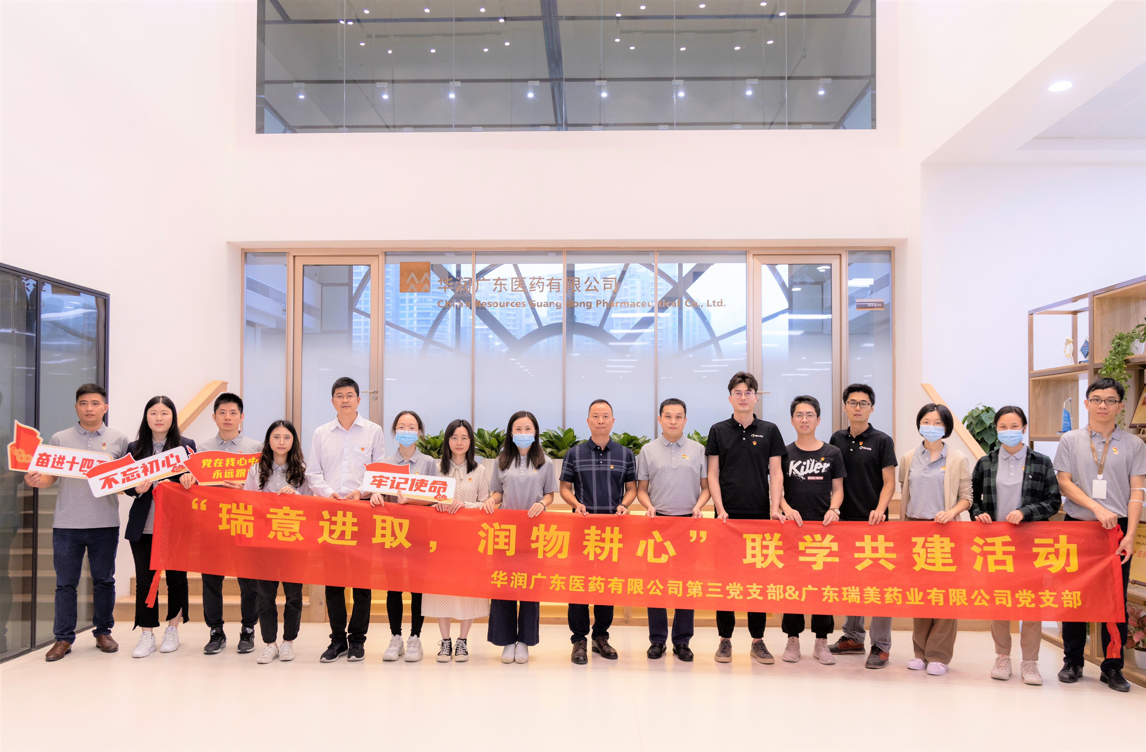 為貫徹落實(shí)華潤醫(yī)藥商業(yè)華南區(qū)域慶祝建黨一百周年暨黨史學(xué)習(xí)教育工作部署,11月2日,華潤廣東醫(yī)藥有限公司(下稱“華潤廣東醫(yī)藥”)第三黨支部與廣東瑞美藥業(yè)有限公司(下稱“廣東瑞美藥業(yè)”)黨支部聯(lián)合開展“瑞意進(jìn)取,潤物耕心”聯(lián)學(xué)共建活動(dòng)。