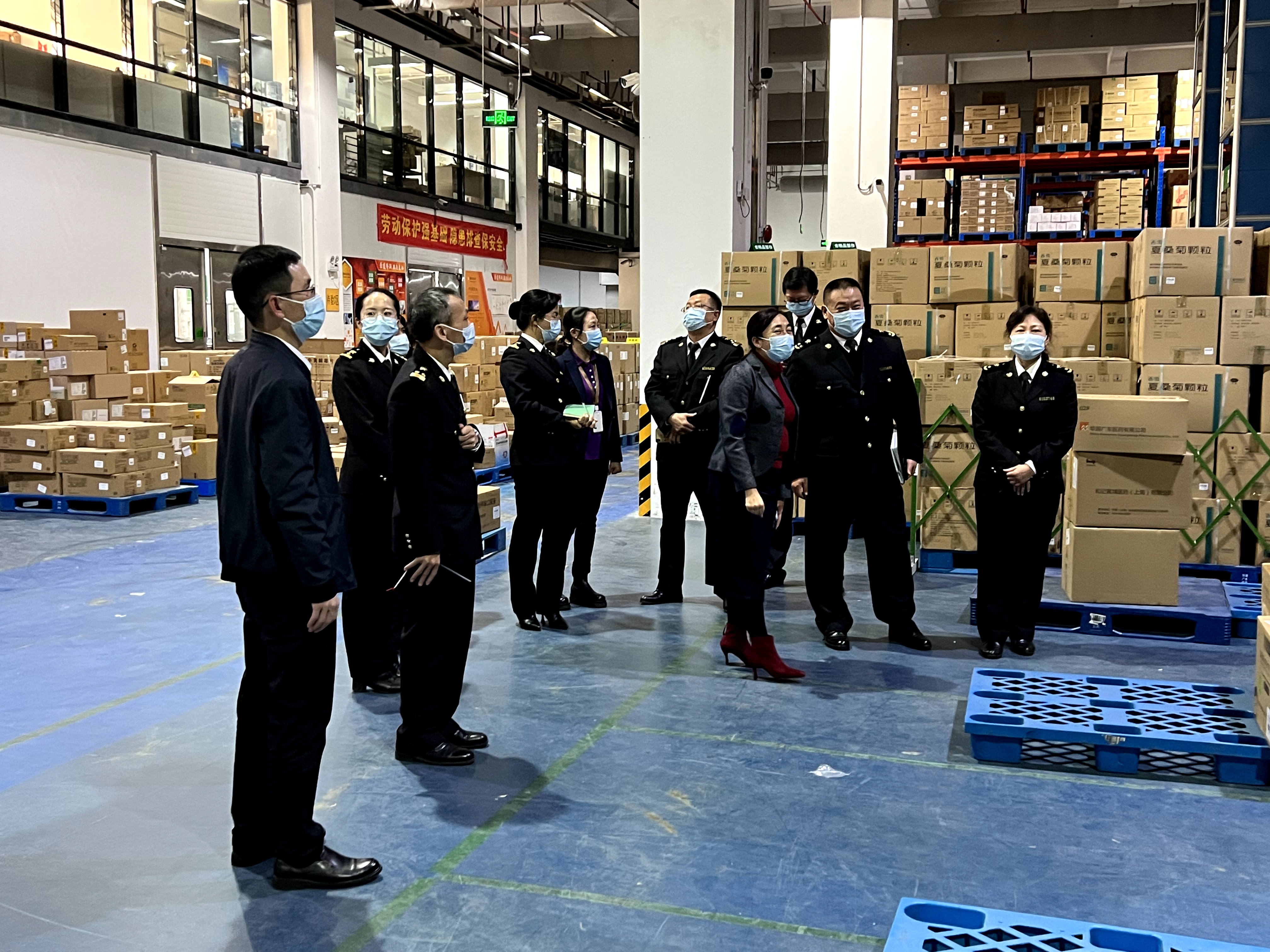 2021年12月22日,廣州市花都海關(guān)關(guān)長王世晶、紀檢組組長董麗震、副關(guān)長郭劍清、副關(guān)長梁文鋒一行9位領(lǐng)導到訪華潤廣東醫(yī)藥有限公司(以下簡稱:華潤廣東醫(yī)藥)花都物流中心,對企業(yè)業(yè)務運營、進口業(yè)務發(fā)展展開調(diào)研。華潤醫(yī)藥商業(yè)華南區(qū)域總經(jīng)理、華潤廣東醫(yī)藥總經(jīng)理霍佩瓊、國際進口部分管領(lǐng)導,進口業(yè)務、物流業(yè)務相關(guān)人員共同參與。