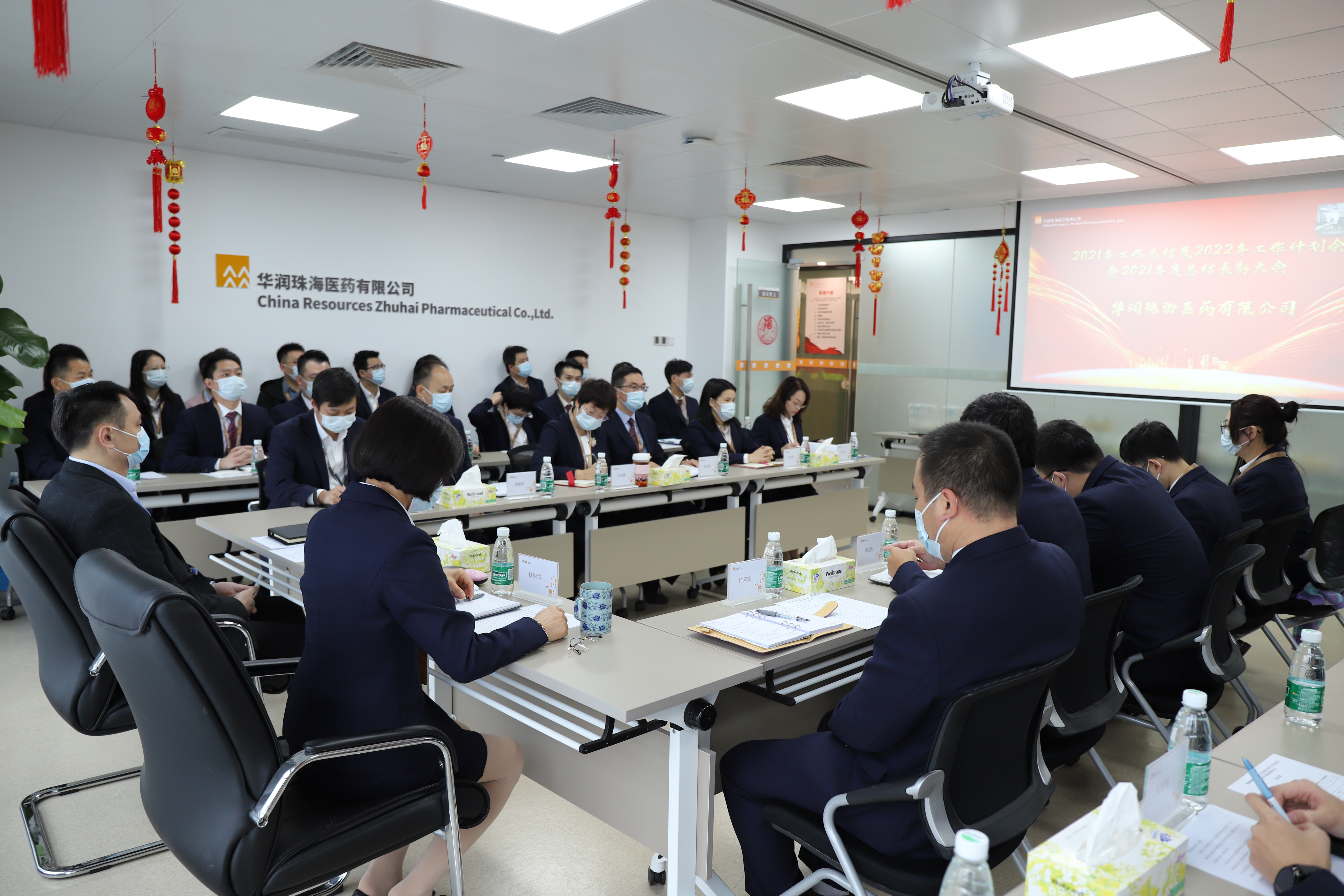 丑去寅來騰錦繡,牛歸虎到競輝煌!揮別2021,喜迎2022。2022年1月14日14:00華潤珠海醫(yī)藥有限公司在公司會議室隆重舉行2021年工作總結(jié)及2022年工作計劃大會暨2021年總結(jié)表彰大會,公司管理團隊及各部門負責(zé)人、采銷人員及優(yōu)秀員工參加會議,華潤廣東醫(yī)藥醫(yī)院銷售部高級總監(jiān)兼華潤珠海醫(yī)藥監(jiān)事伍總監(jiān)線上參會。